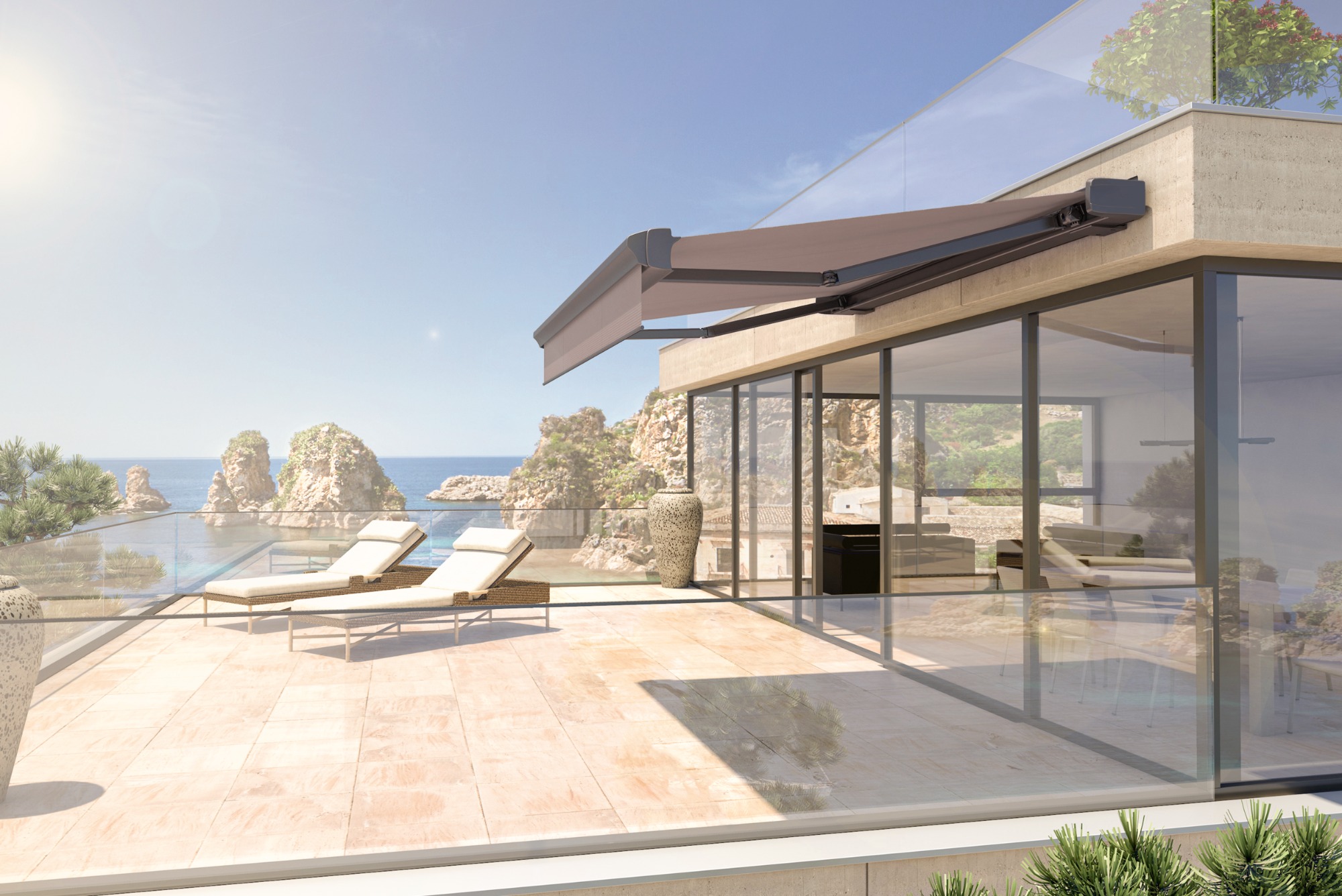 Gerade bei großen Glasflächen ist die Aufdachmarkise die effektivste Lösung gegen sommerliche Hitze.